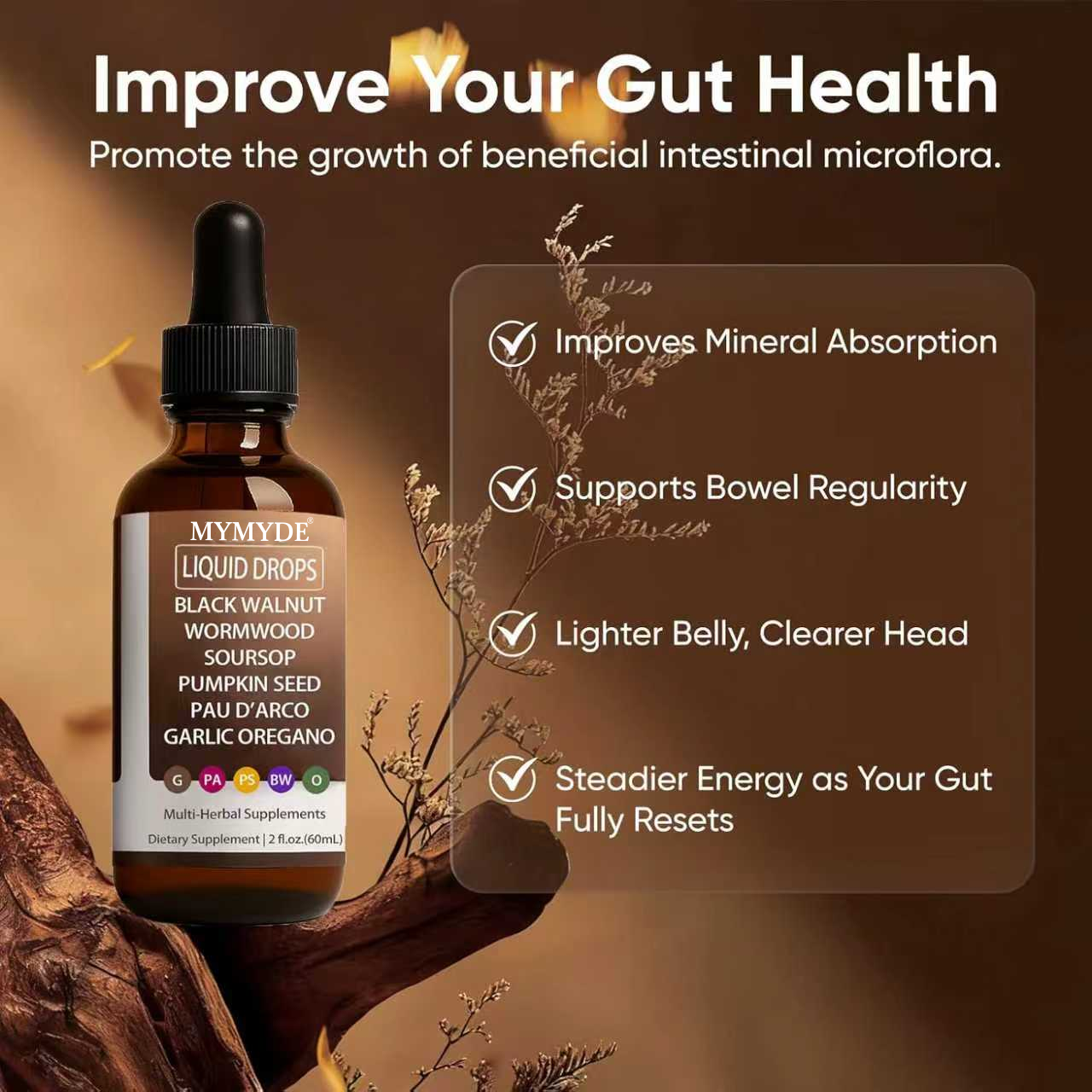 - 1. Premium Gut Health Formula for Women & Men: Our carefully crafted wormwood gut health supplement is designed for both men and women, packed with a powerhouse blend of wellness-boosting nutrients: sweet wormwood, garlic oil, black walnut extract, pumpkin seeds, pau d’arco, oregano oil, and turmeric. This potent combination delivers targeted, effective ingredients to support your daily gut wellness, with every liquid dropper bottle loaded with essential vitamins and supplements to nurture digestive balance. Fortified with key nutrients—garlic supplements rich in vitamin C and black walnut oil packed with vitamin A—this is MYMYDE’s go-to daily vitamin pick for whole-family gut support.